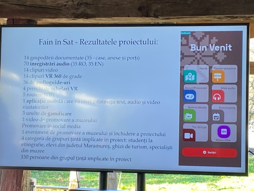 𝑉𝑖𝑛𝑒𝑟𝑖, 7 𝑛𝑜𝑖𝑒𝑚𝑏𝑟𝑖𝑒, începând cu ora 10:00 a avut loc prezentarea rezultatelor proiectului Fain în sat – proiect prin care am reușit să punem la dispoziția vizitatorilor modalități moderne și interactive de a descoperi patrimoniul muzeului nostru: aplicație pentru telefonul mobil, ochelari VR și ghiduri audio.