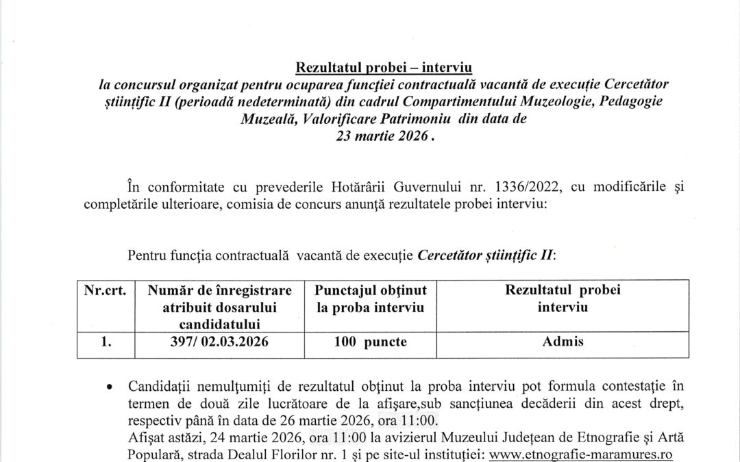 Rezultatul probei Interviu- cercetător științific II
